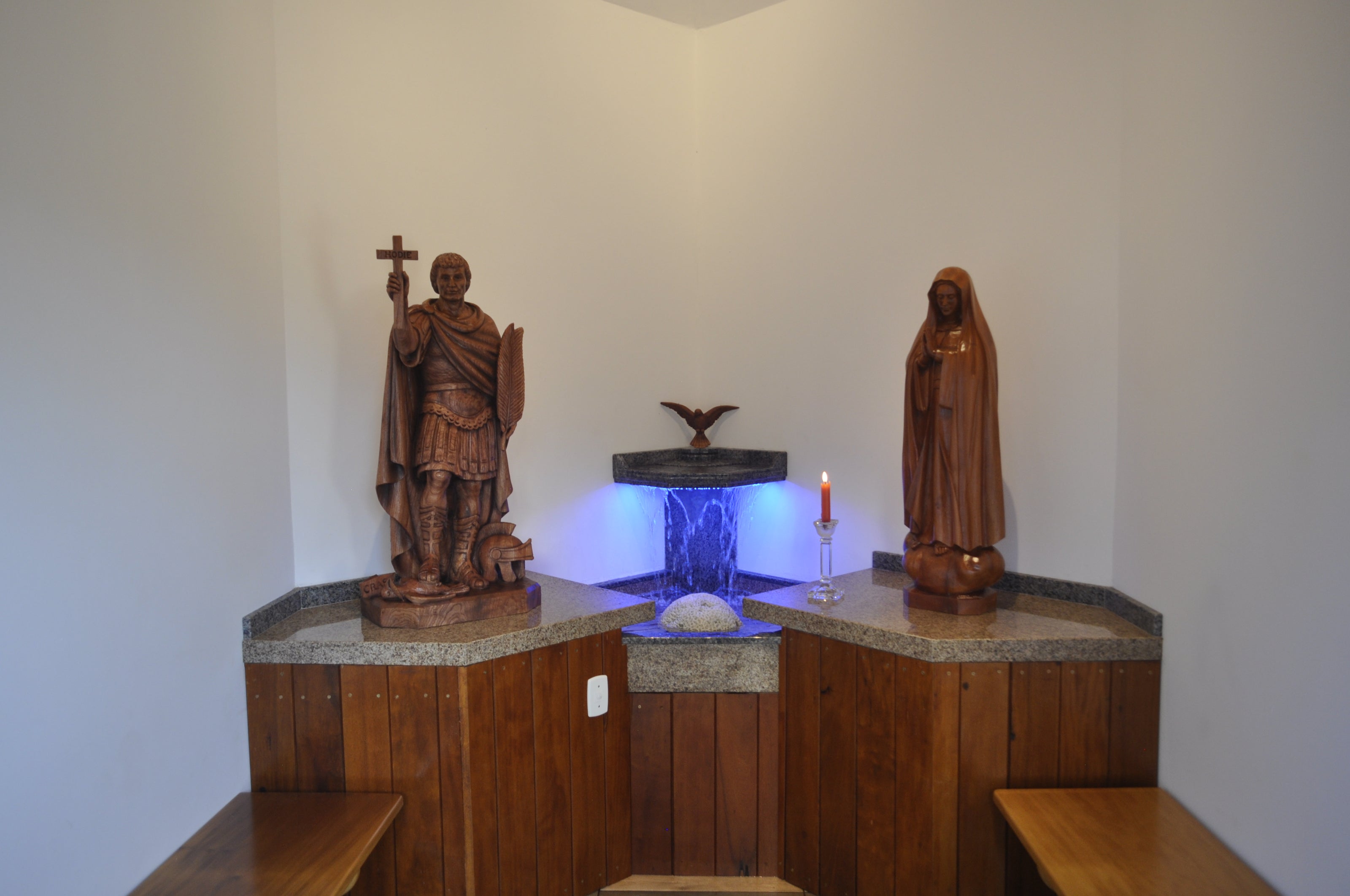 Esculturas em Madeira: A arte sacra de Conrado Moser (Nossa Senhora de Fátima), Werner Thaler (Santo Expedito) e Ingrid Thaler (Espírito Santo).